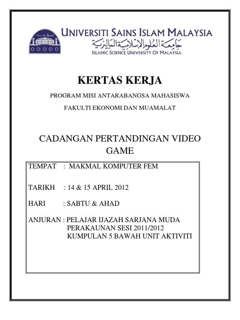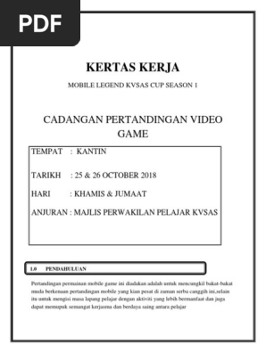 Contoh kertas kerja program 1. Mobile Legend peringkat sekolah bagi memilih wakil ke pertandingan E-. Sabtu Ahad Tempat.