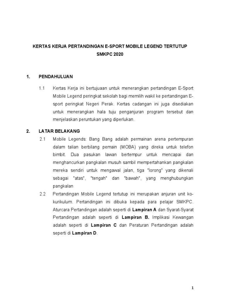 Up to 3 cash back 11 Kertas Kerja ini bertujuaan untuk menerangkan pertandingan E-Sport. DIKEMASKINI SEPTEMBER 2018 PERATURAN PERTANDINGAN E-SPORTS MOBILE LEGENDS 10 UNDANG-UNDANG. Tournament di rumah sendiri Link pendaftaran seperti berikut.